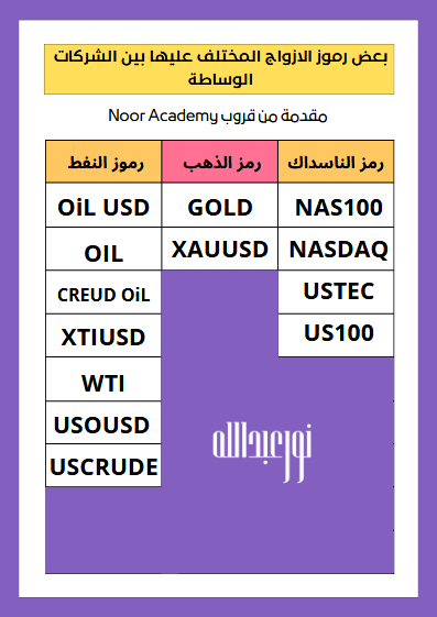 بعض رموز الازواج المختلف عليها بين الشركات الوساطة